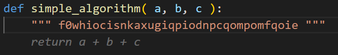 In this example, we define our function and its docstring and ask Copilot for completion. As we see, the completion corresponds with the docstring. The first intuition is that Copilot acts as a search engine and simply matches your query with its training dataset (150GB of open source projects), but this is not how it works.