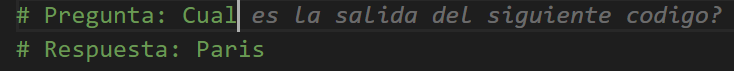 In this example we reverse the process, we give the answer to try to generate the question. Copilot generates a question that we did not expect. We expected ‘What is the capital of France?’ and Copilot asked ‘What is the result of the following code?’ but still we can understand a correct suggestion.