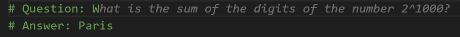 Here we create some random/crazy string that can’t be in the training set. The result still looks like is the most coherent solution that can be provided, in this case: the sum of the input parameters.