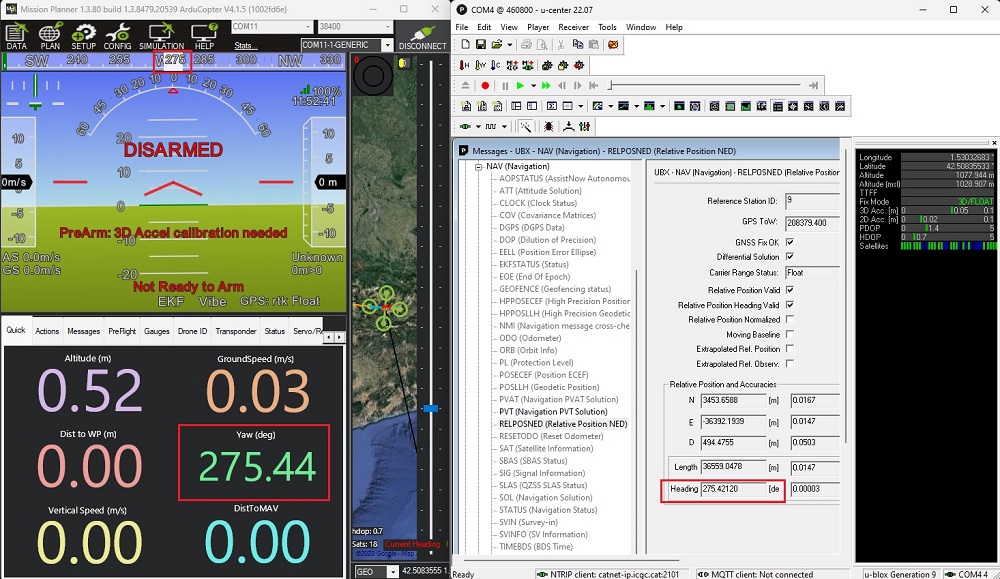 - For an additional verification, ensure that the heading value in the AHRS matches the one found in CTRL+F–>MAVlink inspector–>GPS2_RAW–>yaw.