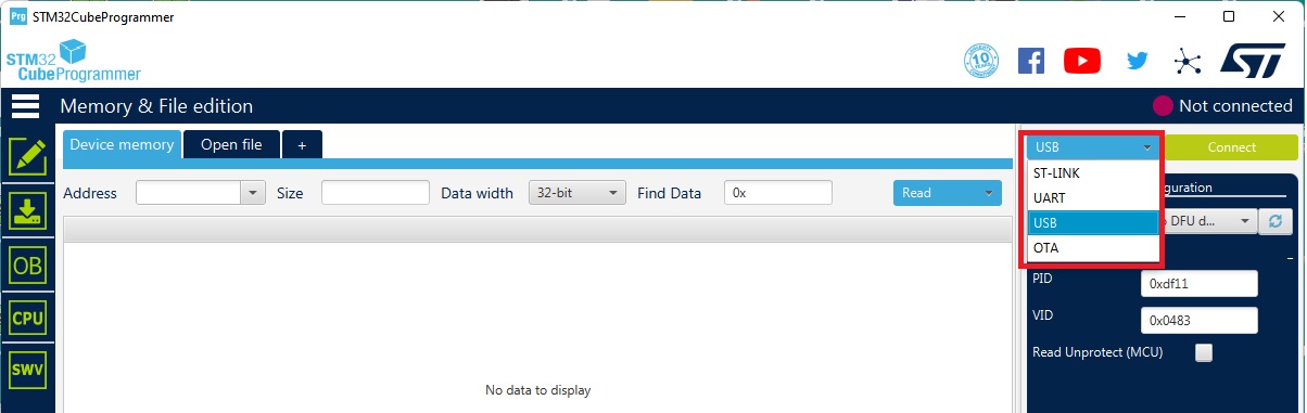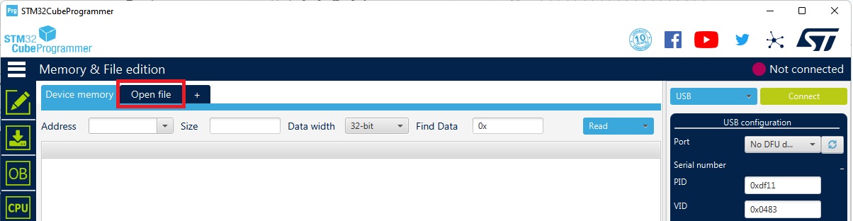Once unzipped, it contains a firmware.hex file and a main.mpy file. - STM32 Cube Programmer, you can download for free here (Windows Version)