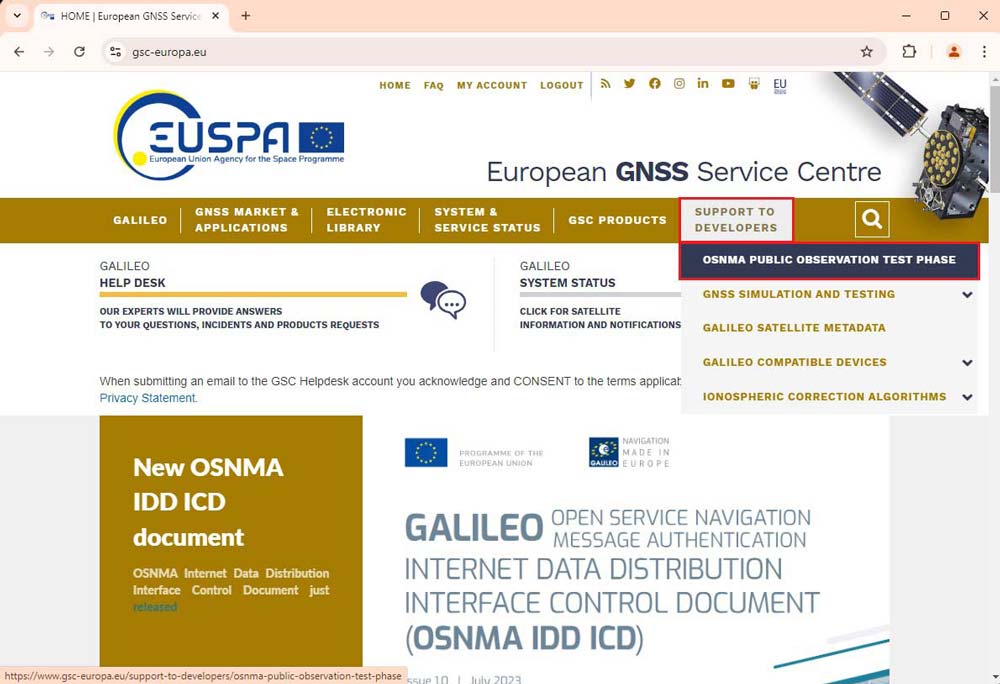- Go to SUPPORT TO DEVELOPERS–>OSNMA PUBLIC OBSERVATION TEST PHASE. Fill in the form to become an OSNMA Public Observation Test Phase participant.