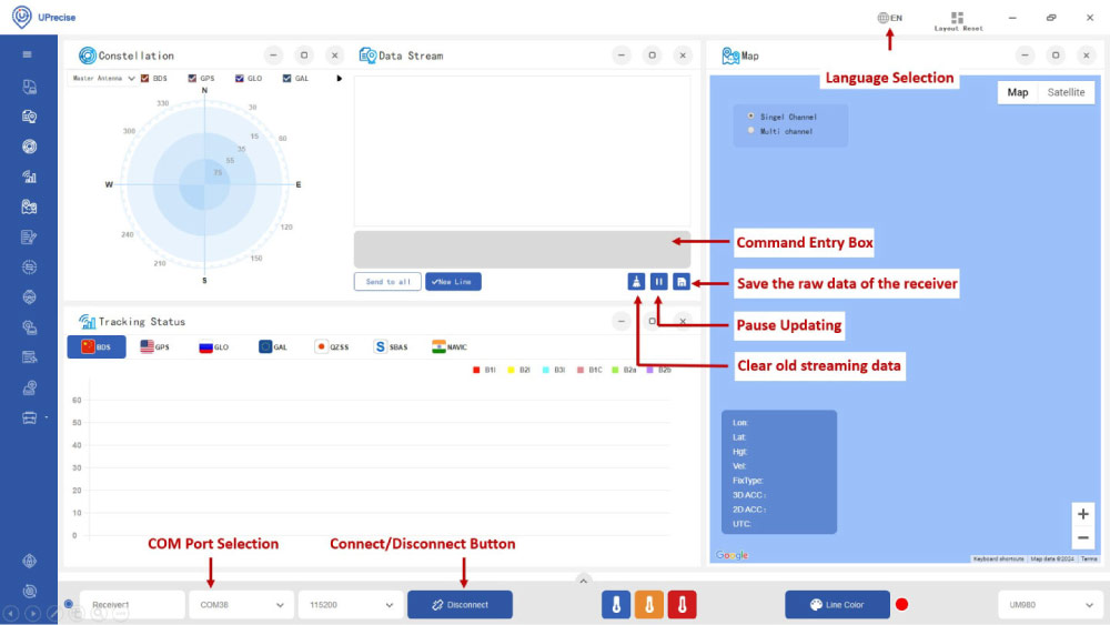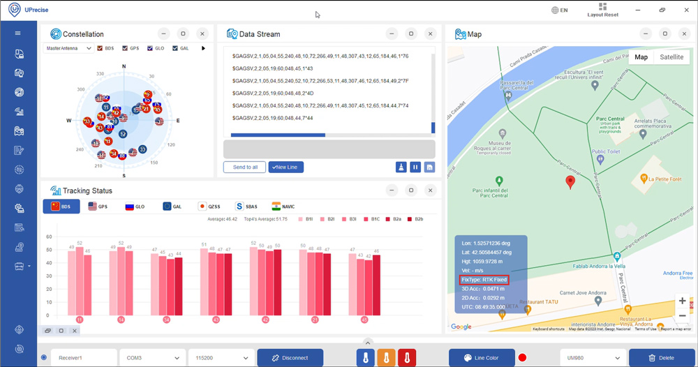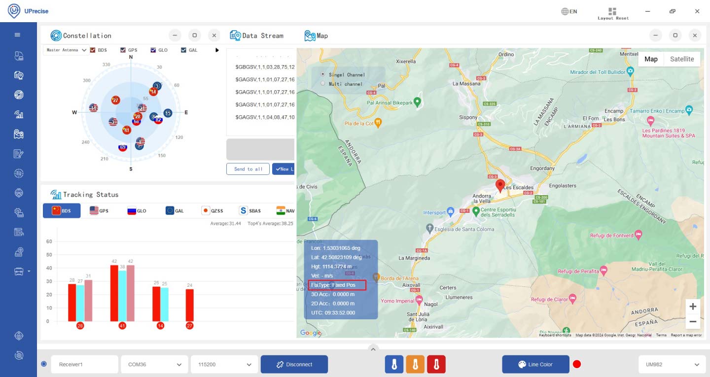 Then click Enter. In a few seconds you will see the Constellation, Data Steam and Tracking Status on the screen.