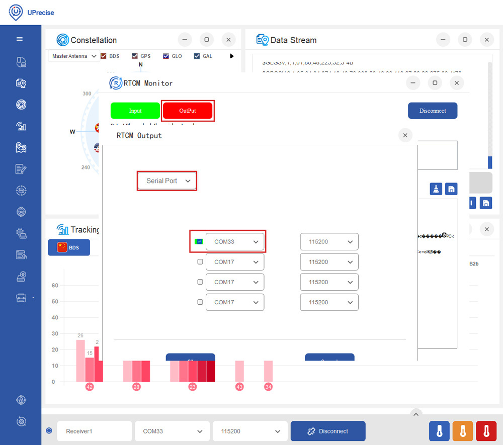 - Click the OutPut. Select Serial Port, and choose the COM port of your receiver.