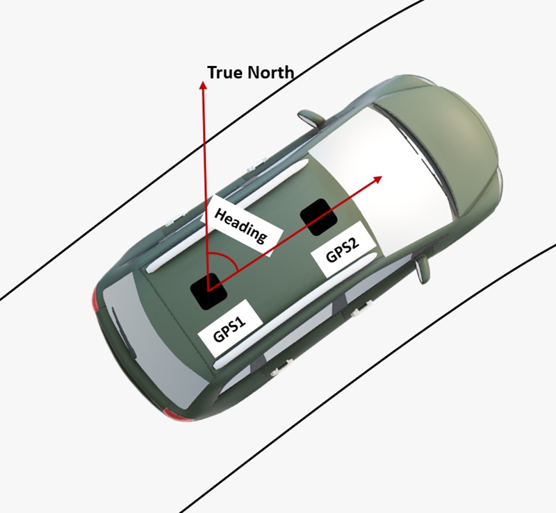 - The simpleRTK3B Compass can function as a typical GPS, providing location coordinates when connect single antenna at master antenna connector (labeled as GPS1 ). When connected to dual antennas, it can also provide heading and pitch information. Unicore heading result is the angle from True North to the baseline of the master antenna (labelled as GPS1 on board) to the slave antenna (labeled as GPS2) in a clockwise direction. Pitch angle refers to the angle of the car or drone relative to the horizontal plane.