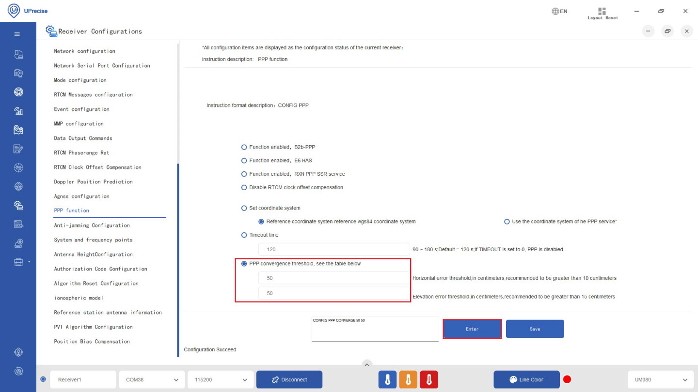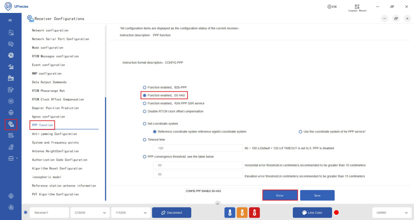 - Go to Receiver Configuration–>PPP function. Check your preferred PPP signal. Click Enter.