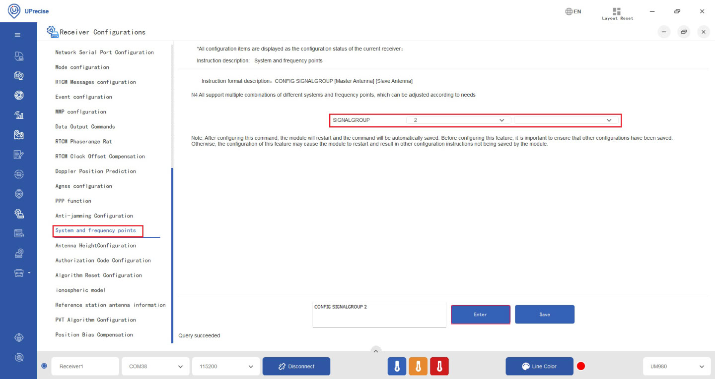 - For UM980 and UM981 users, use the command: CONFIG SIGNALGROUP 2