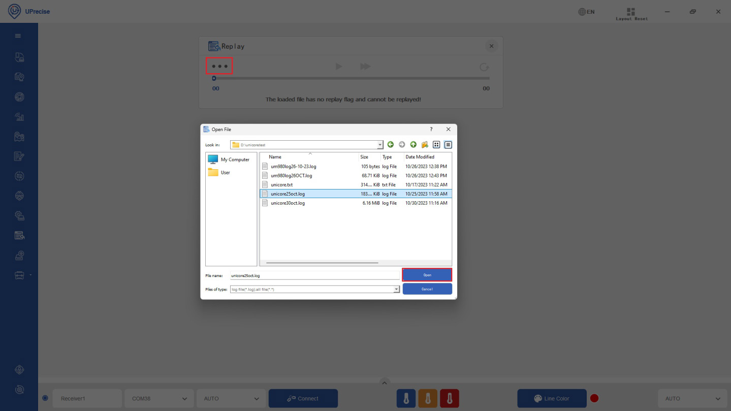 - If you want to check your logged data, at menu bar go to replay. Click Ok in the dialog box.