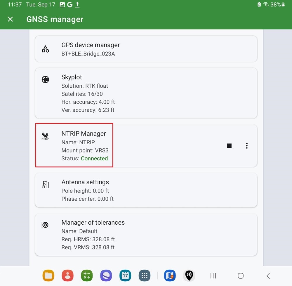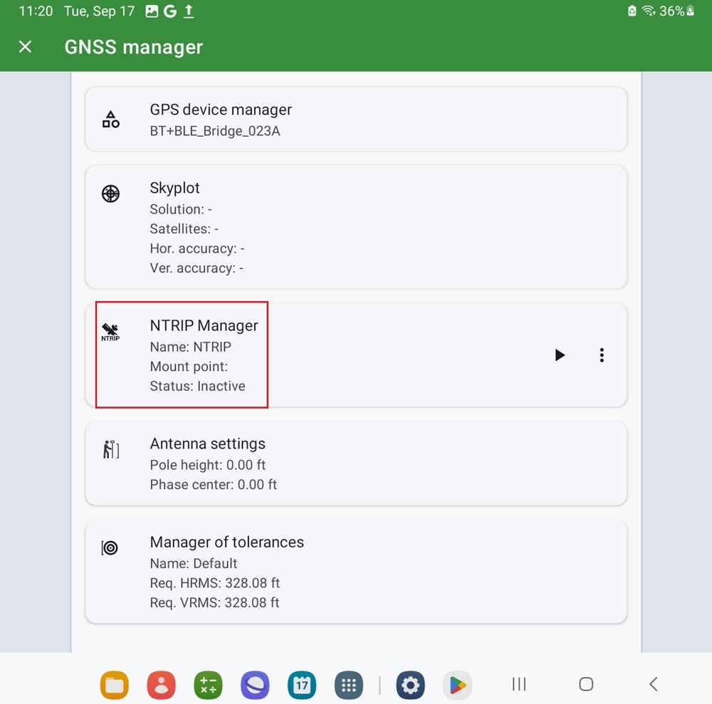 - Go to GNSS manager–>NTRIP Manager.