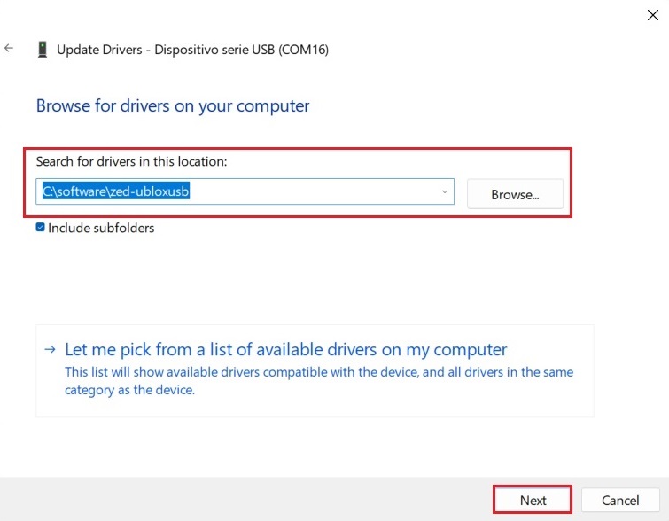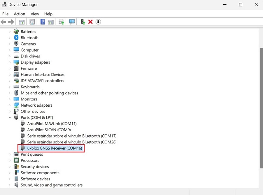 - After updating the driver, you will see USB port is recogonized as u-blox GNSS Receiver.