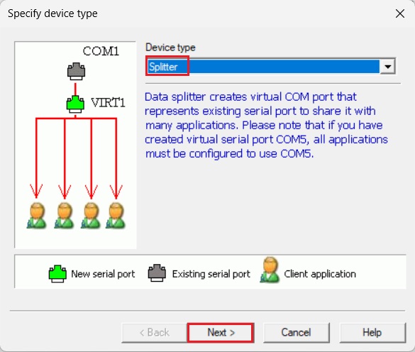 - Open Virtual Serial Ports Emulator. Go to Device–>Create….