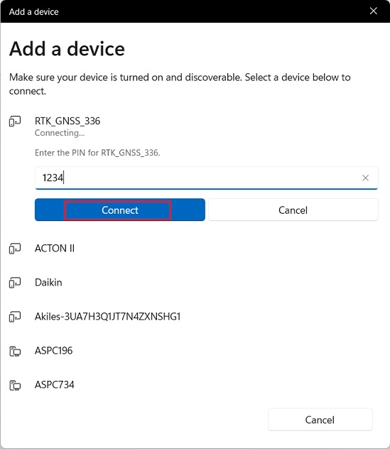 - Enable Bluetooth of your computer, and pair it with your RTK receiver.