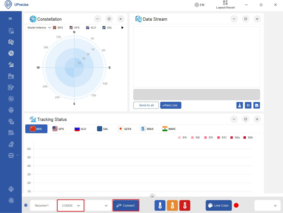 - Choose the COM port of your receiver and click Connect. You can check the serial port number of your receiver at Device Manager–>Ports of your computer.