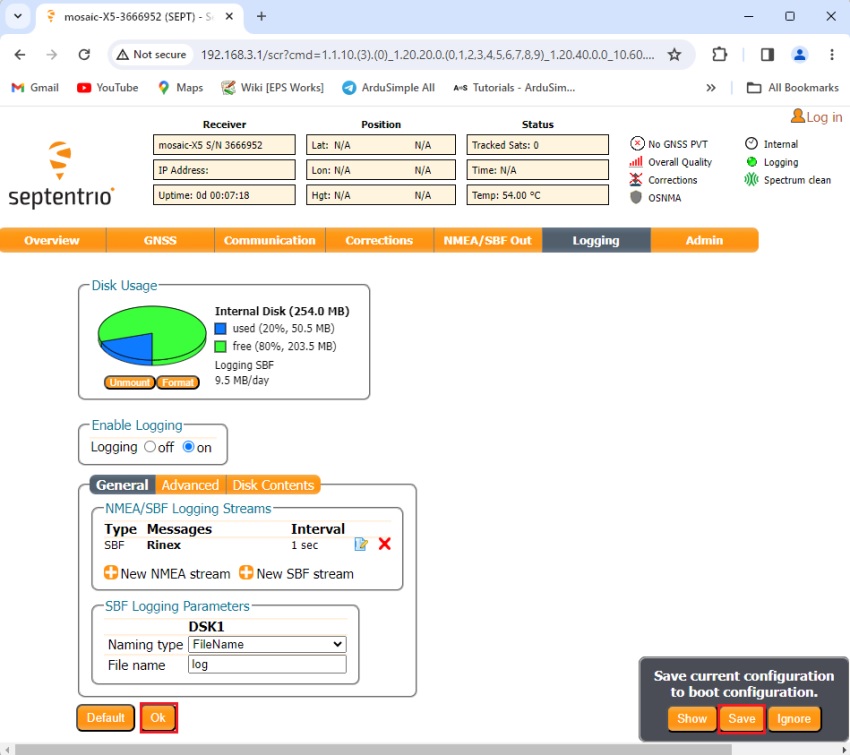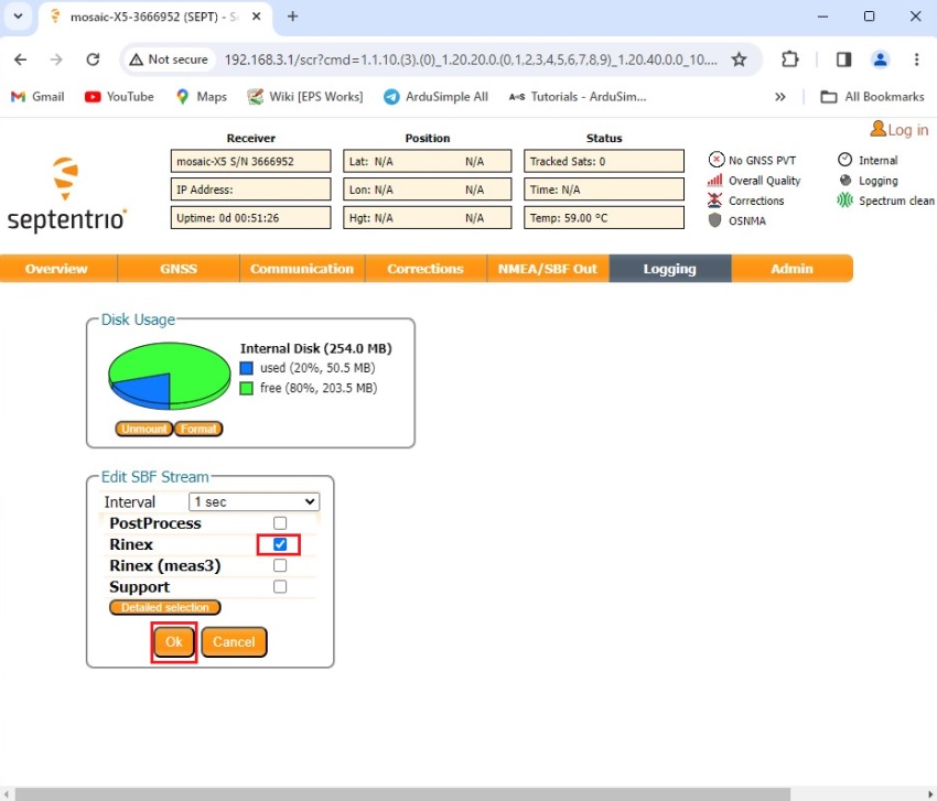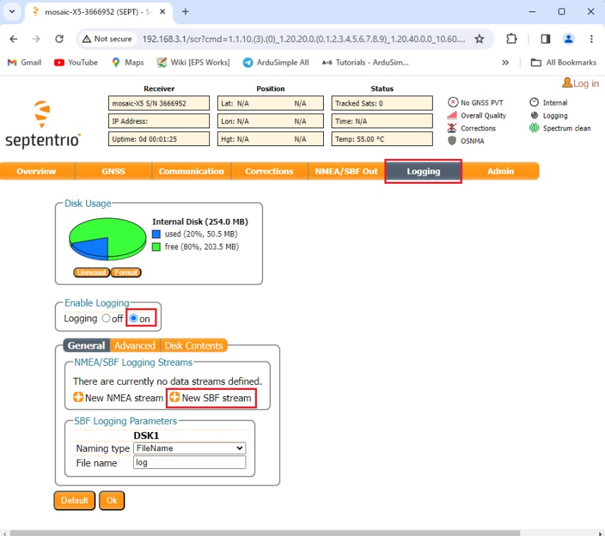 - Open Septentrio web interface by typing 192.168.3.1 in your browser.