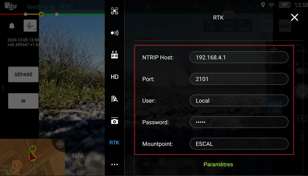How to configure WiFi NTRIP Master and the drone Remote Controller with the same parameters.