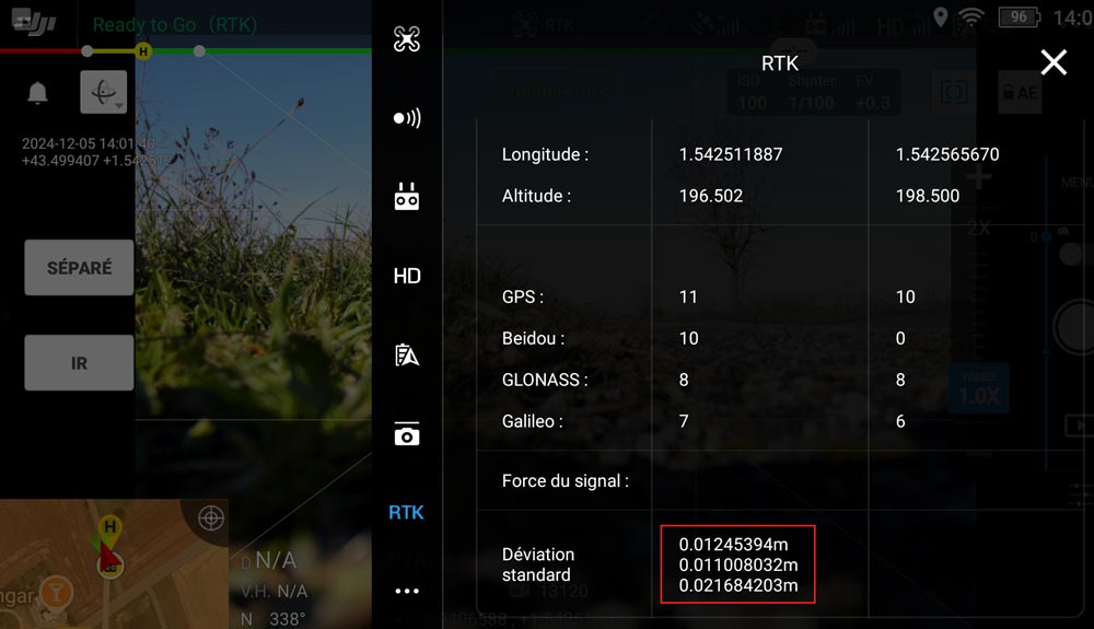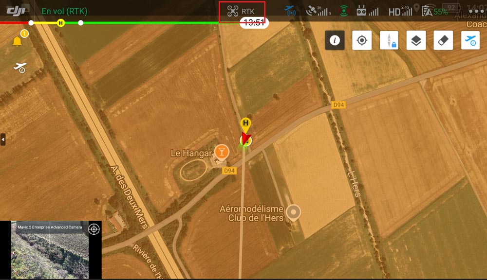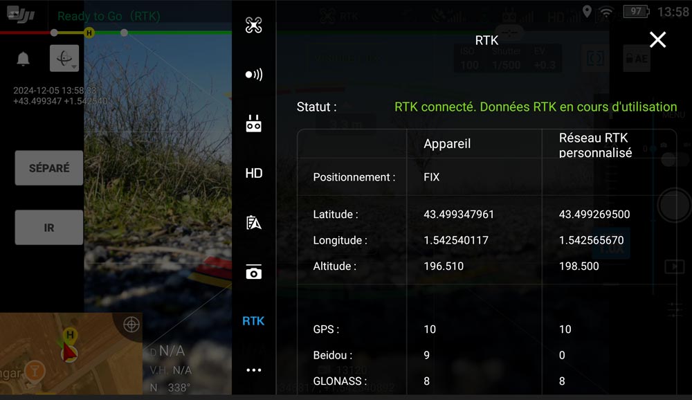 - Position is shown on Remote Controller, and RTK status is displayed.