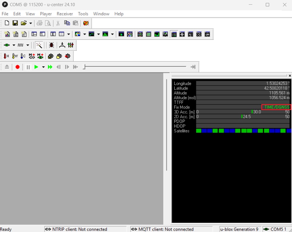 - Once the time and accuracy criteria are met, your GNSS receiver will turn into TIME. With a good satellite view it will take few minutes. Note that you may not reach TIME mode with bad satellite signal.