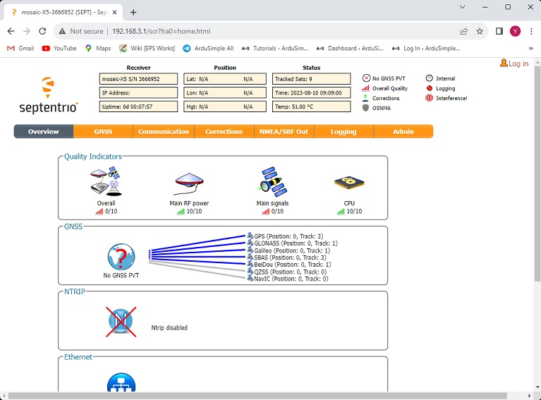 - Open a browser and go to 192.168.3.1. The Septentrio web interface will appear.