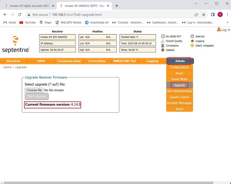- If you don’t have the latest firmware, please check Septentrio website download it and upgrade your receiver.