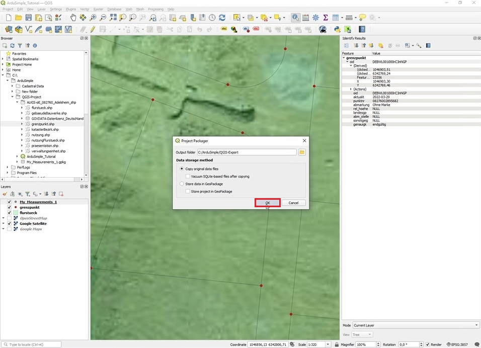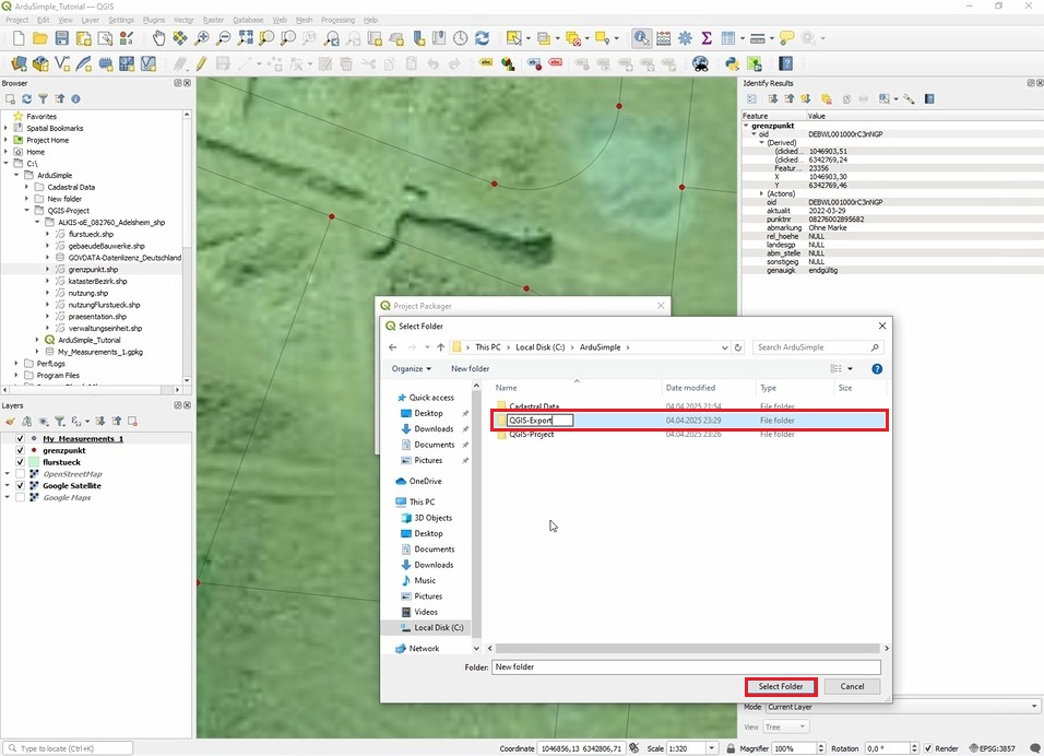 1. Select the output folder (e.g. a folder named „QGIS-Export“) to which you want to export the project and click on OK.
