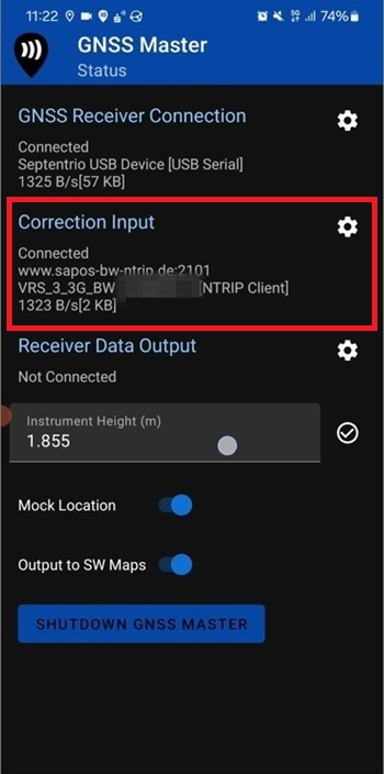 1. To achieve centimeter-level accuracy in your field measurements, you need to use RTK corrections. In this tutorial, we will get correction data from the Germany’s SAPOS NTRIP service, which has a calibrated base station located near our field. If you are located in Germany too, follow our tutorial how to register and access the SAPOS NTRIP service in Germany.