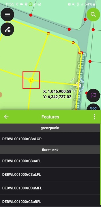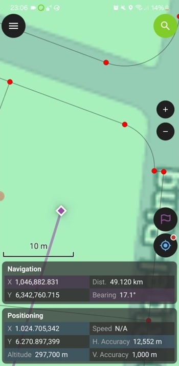 1. Now you can start with navigating to points on your terrain and adding your measured points. To select a destination to navigate to, click on an element on the map.