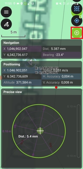 1. If you have leveled your survey pole, click on the + button to add a new measurement point.