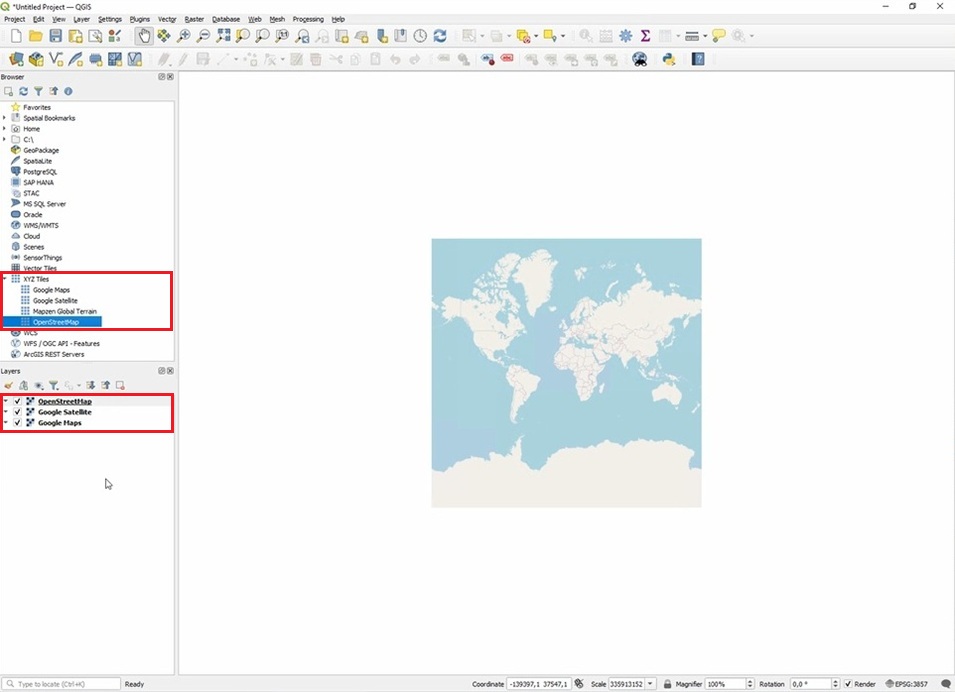 Repeat these steps for each XYZ Tiles layer you want to create. in our tutorial we will use OpenStreetMap and Google Maps.
