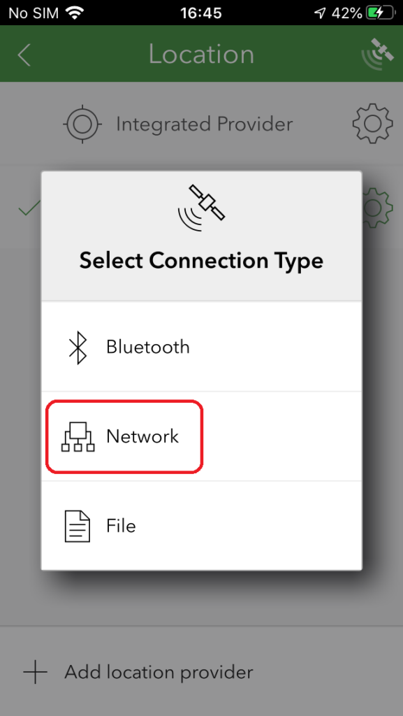 Now it’s time to connect our iOS app to this NMEA Server. Only iOS apps supporting TCP or UDP GPS receivers will be compatible with this method. To show you the steps, we chose ArcGIS Survey123 for surveyors: