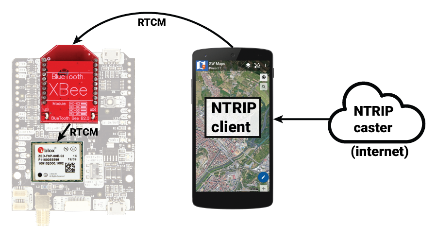 Alternatively you can also connect your simpleRTK2B board to a PC or mobile phone via USB and use an application in your PC or mobile phone to do this conversion. Check out our tutorial to learn how to connect to a NTRIP caster. RTK correction services