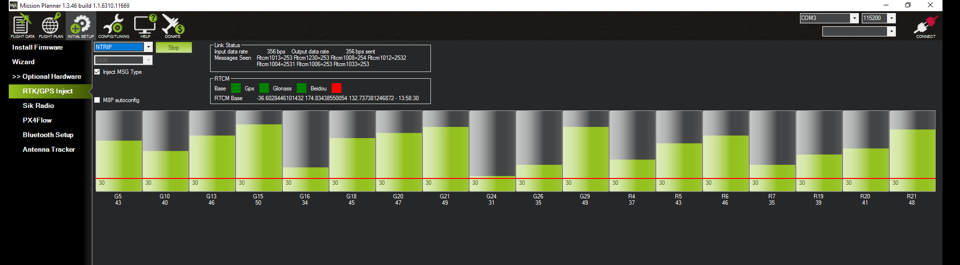 - Go to SETUP–>Optional Hardware–>RTK/GPS Inject.