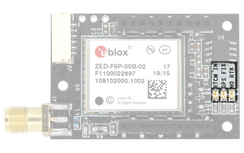 - NO RTK: u-blox default configuration for RTK_STAT pin is used: OFF when RTK fix, blinking when receiving RTCM data, ON when no correction.