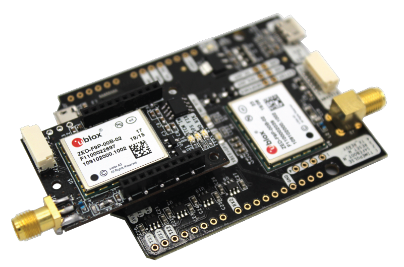- simpleRTK2B (using ZED-F9P, used as “heading” board)