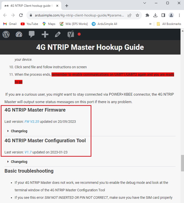 - Download the latest 4G NTRIP Master firmware from the User Guide.