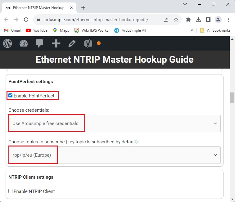 - Generate your Ethernet NTRIP Master parameters from this link, make sure to enable PointPerfect.