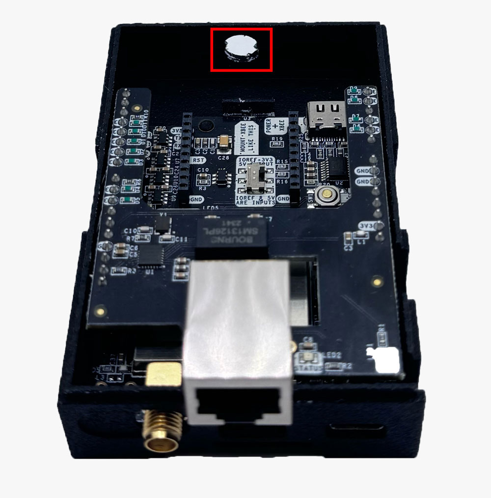 - simpleRTK3B Pro receiver with Shield for Septentrio Native Ethernet inside a plastic case