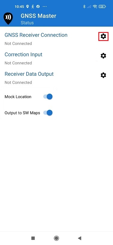 - Click the gear icon on the right side of GNSS Receiver Connection to enter the setup menu.