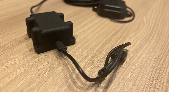 - ZED-F9P RTK receiver with USB and Bluetooth inside a plastic case
