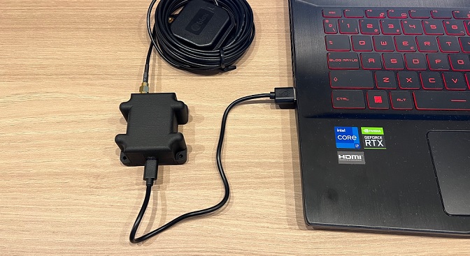 - Connect the GNSS antenna to your device, in a location with good view of the sky, or near a window for testing the functionality.