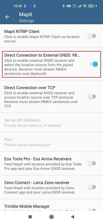 - Open Mapit GIS. Go to Settings. Tap on External GNSS.