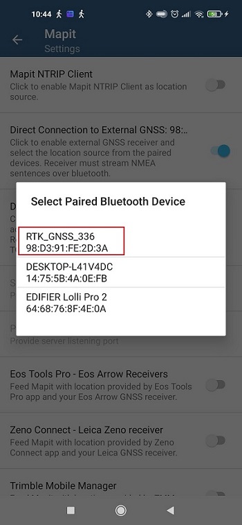 Secondly, connect your receiver to Mapit GIS via Bluetooth.