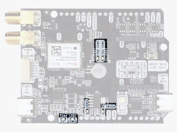 • TX2: XBee UART TX (this pin is also connected to NEO-F10 UART1 RX).