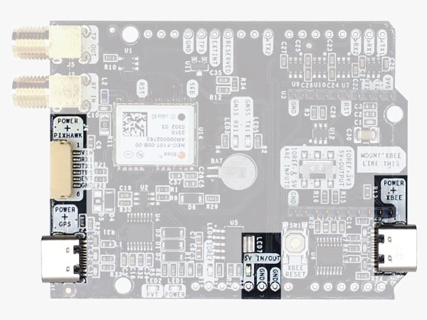 For example, just plug it on top of an Arduino UNO board, and simpleRTK2B V3 will turn ON.
