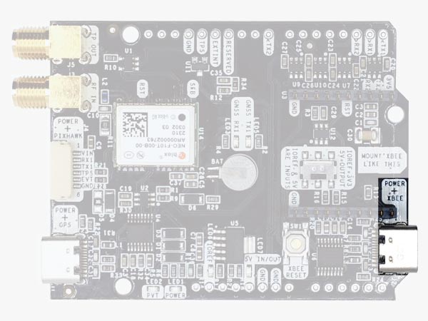 To use this connector to configure an XBee radio, you will have first to disable data output on NEO-F10T, as this USB interface shares connection to the XBee device with the NEO-F10 module.
