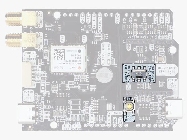 • RX2: XBee UART RX (this pin is also connected to NEO-F10 UART1 TX).