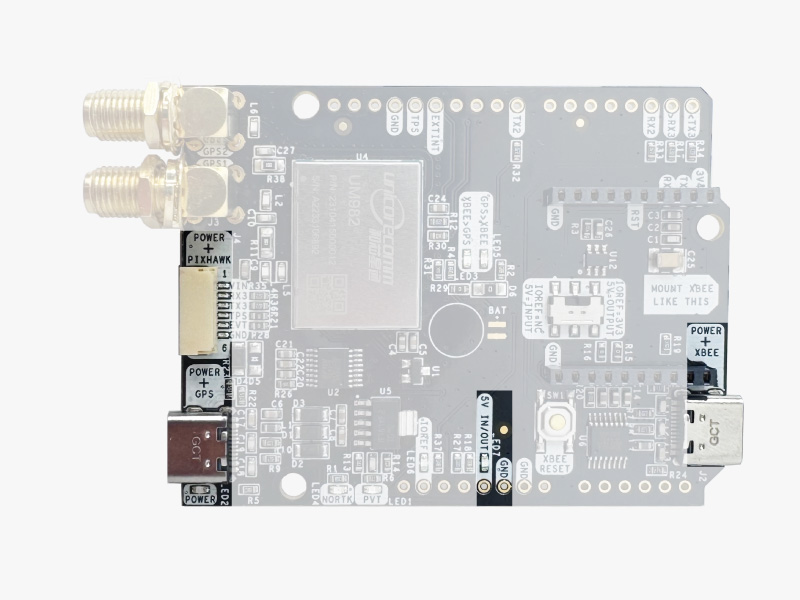 • RX2: Unicore COM2 RX (this pin is also connected to XBee UART TX)