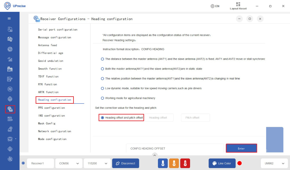 1. At Data Stream you can see the UNIHEADING Message. Don’t forget to type saveconfig and press Enter to save your configuration.