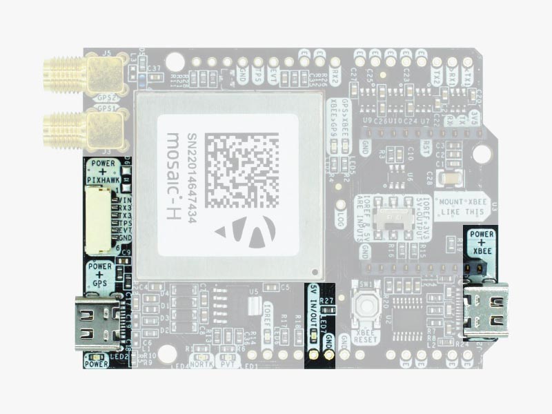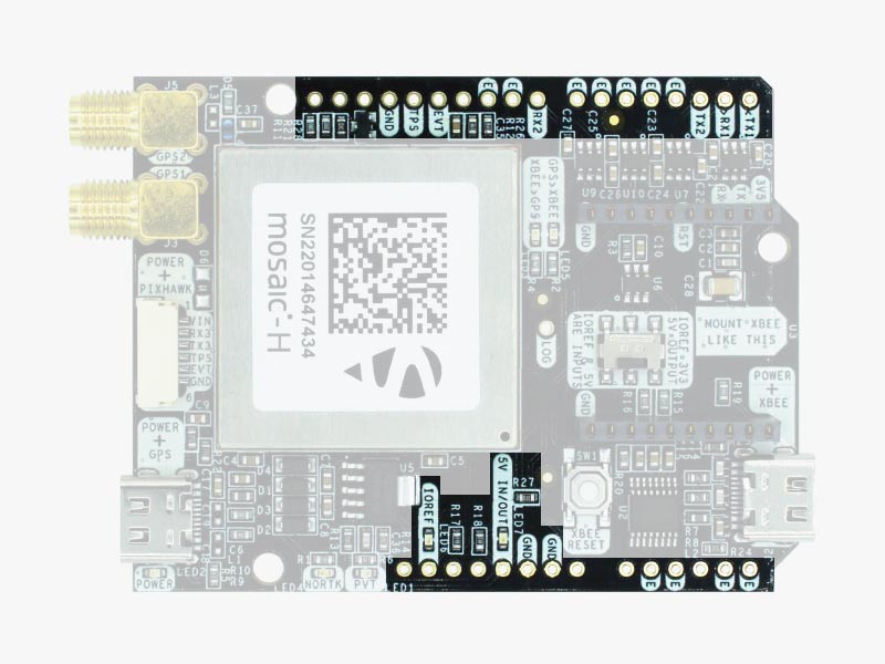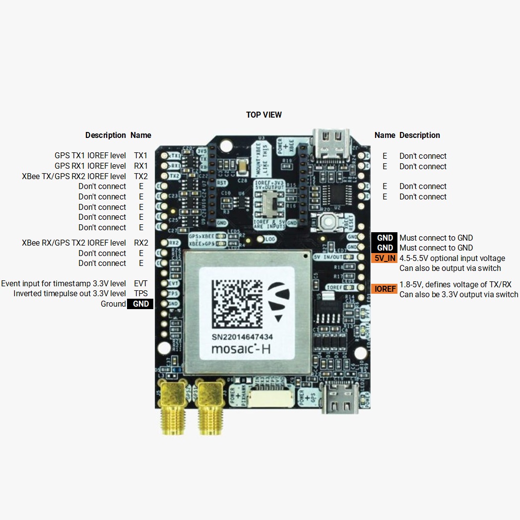 • TX2: XBee UART TX (this pin is also connected to Mosaic COM2 RX).