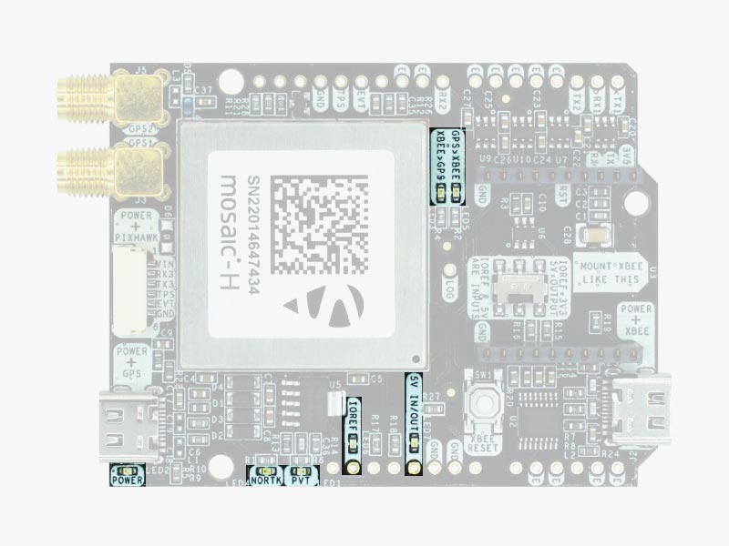 • GPS>XBEE: The Mosaic is outputting data to the XBee radio.