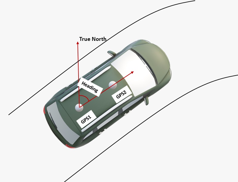 1. There is a minimum distance required between 2 antennas for an accurate heading to be generated. Heading accuracy can be improved by increasing the baseline length (distance between the 2 antennas). In general minimum 1 meter distance (baseline length) is required to achieve satisfactory sub-degree precision under non-ideal condition. In practical, this is not possible for many vehicles. With a good installation with 0.5 meters, you can get decent results. With 0.3 meters it’s possible to get heading, but it’s output sometimes will be a bit noisy. But it might be good enough for some applications.